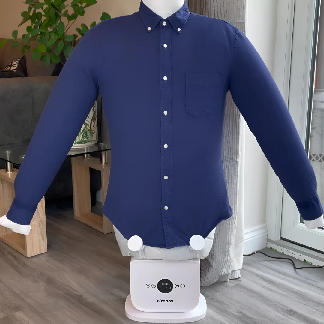 With its simple attachment system, the Aironox is ready to use in seconds—no ironing board, no heavy lifting, no complicated prep. Just slip on your shirt, blouse, or tee, press start, and let the machine deliver a crisp, wrinkle-free finish. It’s the faster, easier alternative to traditional ironing.